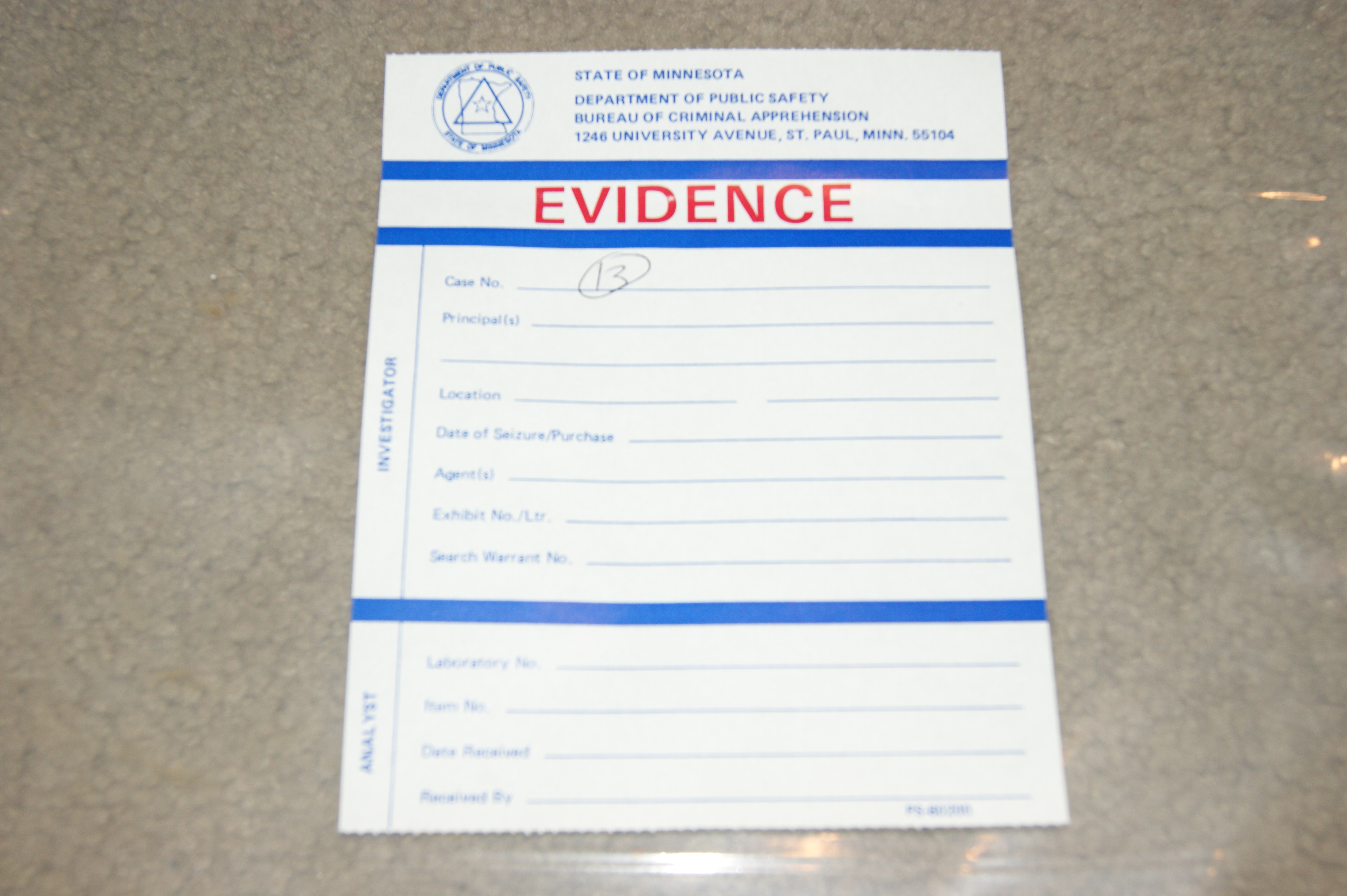 Jill Oliveira, the public information officer for the MNDPS/BCA said, “The BCA had no role in the investigation you describe and did not attach any tags to evidence in that case”.